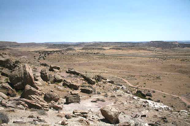 The Trail Through Time is located just 30 miles west of Grand Junction, Colorado in Rabbit Valley. Interstate Highway I-70 runs right past the trailhead and there is a convenient turnoff nearby. Today the site is a bit on the arid side, but 140 million years ago the area was a lush garden with forests, lakes, rivers and ponds inhabited by a variety of dinosaurs and flying reptiles. Today fossilized bones and plant material can still be found and several of the more prominent sites are marked alongside a 1.5 mile trail that loops through the area. Bring a hat and water - it can get very hot.